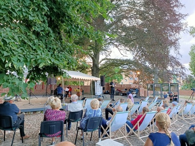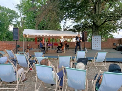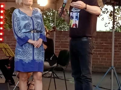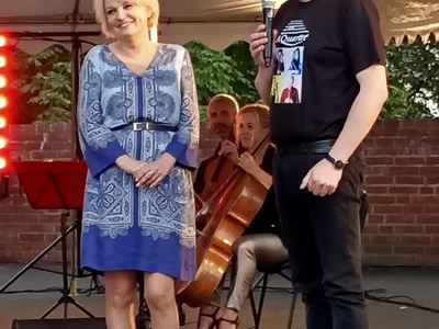 W niedzielę 18 lipca 2021 r. niezmiernie było nam miło gościć po raz pierwszy w Resku (i na pewno nie ostatni !), kwartet smyczkowy Aquartet z Katowic, zespół grający koncerty w całej Polsce od 20 lat. Z małej sceny Wzgórza Borków popłynęła muzyka lat 80-tych, przepięknie zinterpretowana przez muzyków kwartetu, wprowadziła licznie zgromadzoną publiczność w świat przebojów z repertuaru Kory, Michaela Jacksona , Madonny, Wham, The Police, Princa, Lady Pank, Republiki, Stinga. Program poprowadził Pan Witold Pelka, przedstawiając kolejne utwory, jak i wykonawców, z humorem i dowcipem, angażując równocześnie publiczność do aktywnego udziału w koncercie.