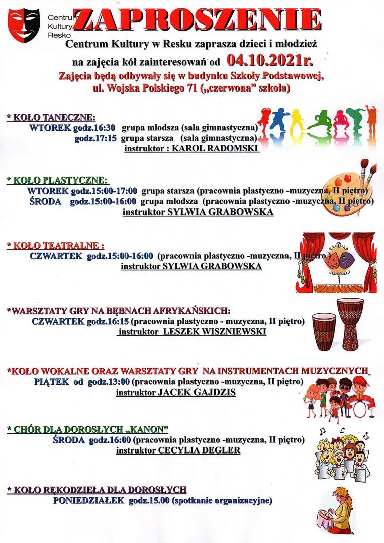 Zajęcia dla dzieci, młodzieży i dorosłych - zapraszamy od 4 października !